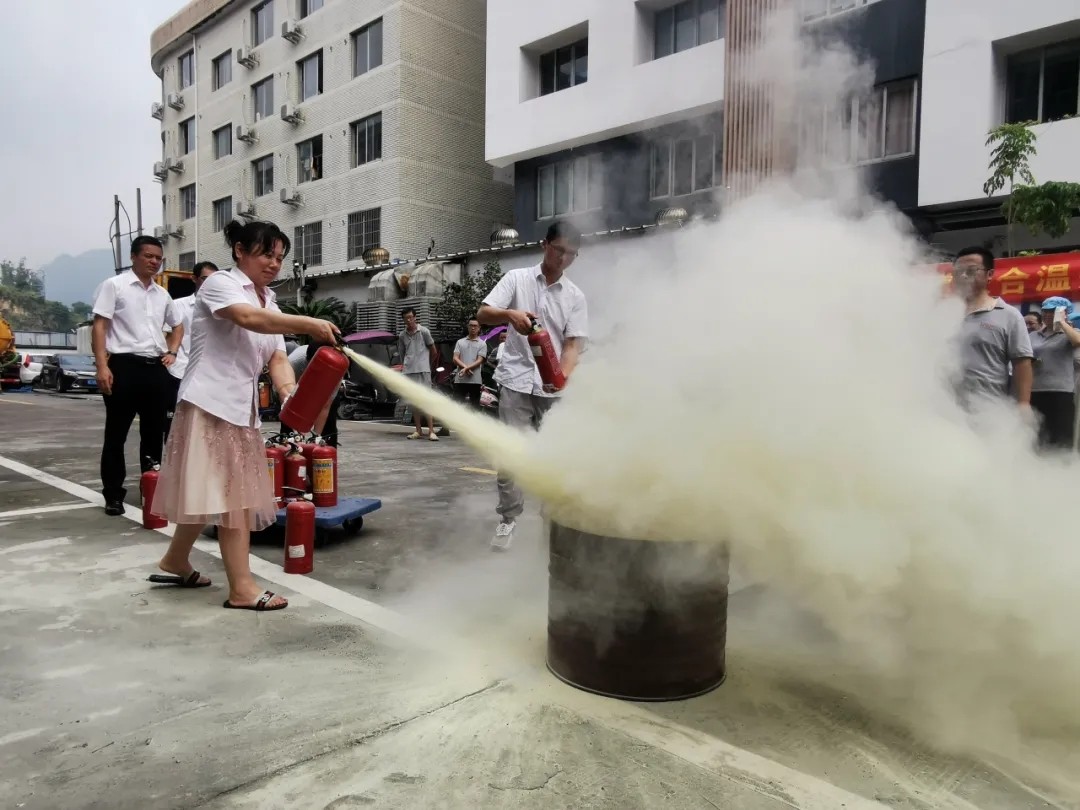 隨后,朱樹(shù)清和陳隆江同志為我們講解并演示了滅火器及消防水帶的使用方法。緊接著(zhù),員工們也進(jìn)行了實(shí)操滅火,進(jìn)一步提高了大家對于火災的防控能力。