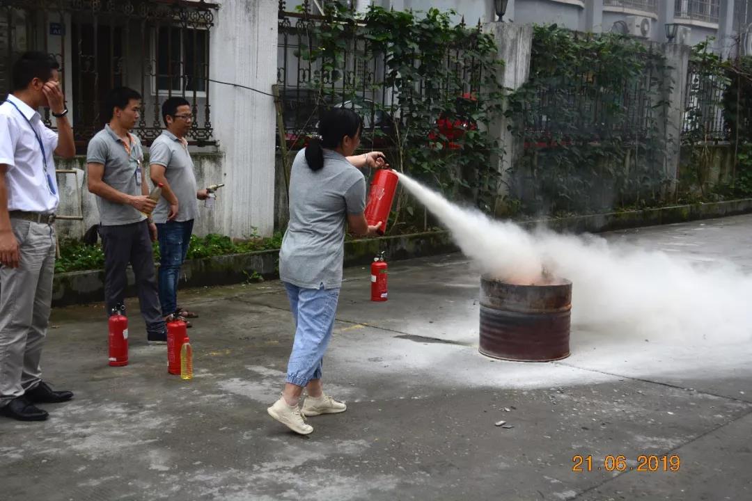 隨后公司員工進(jìn)行了滅火器使用及滅火演練