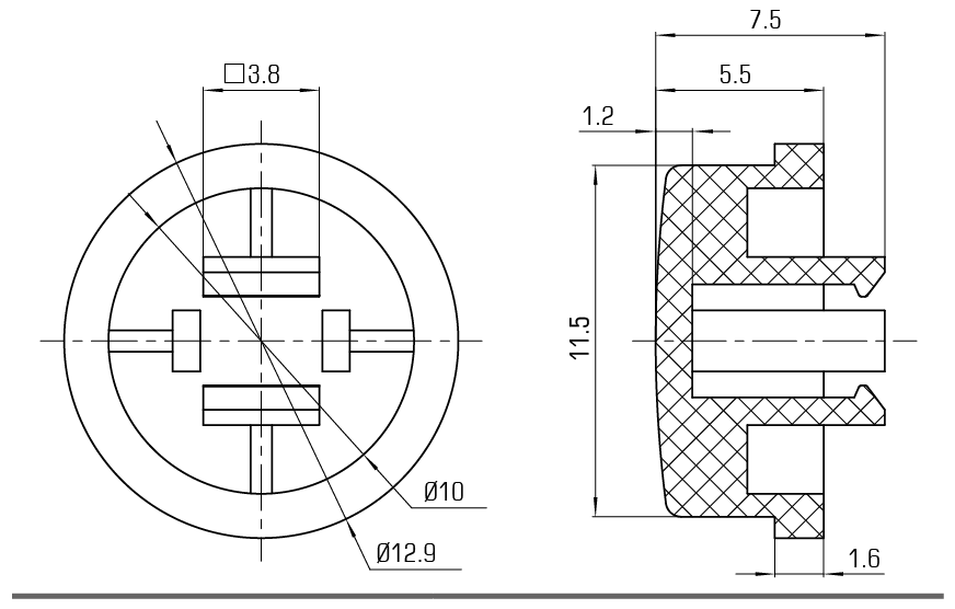 SC2鍵帽系列內孔為3.8×3.8mm配12×12方頭輕觸開(kāi)關(guān)