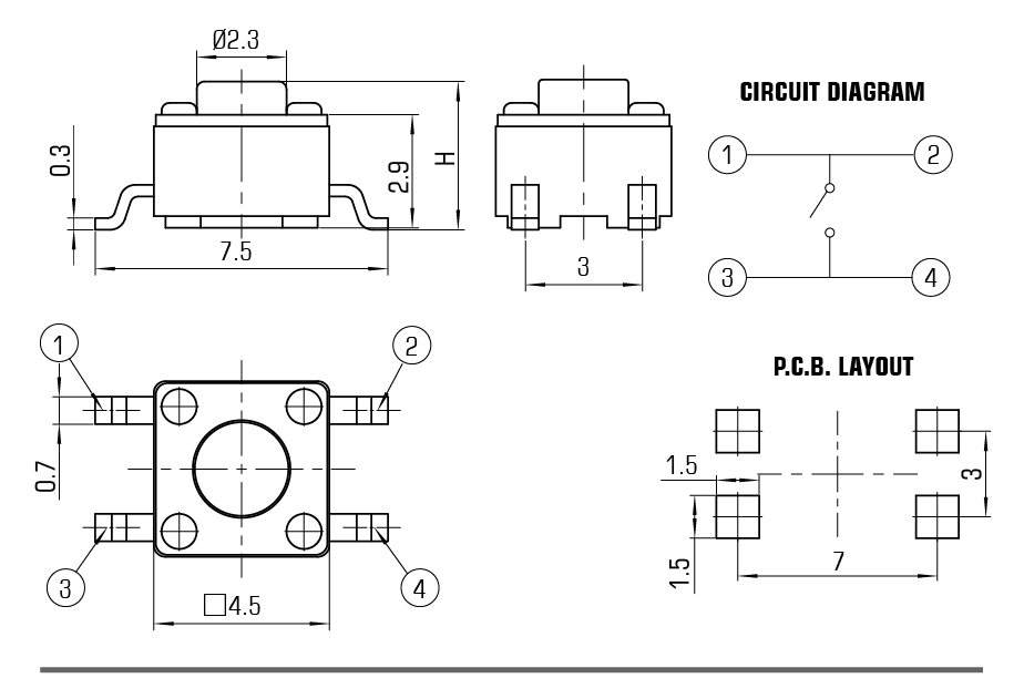 | H | 3.5 | 3.8 | 4 | 4.3 | 4.5 | 5 | 5.5 | 6 | 6.5 | 7 | 7.5 | 8 | 8.5 | 9 |