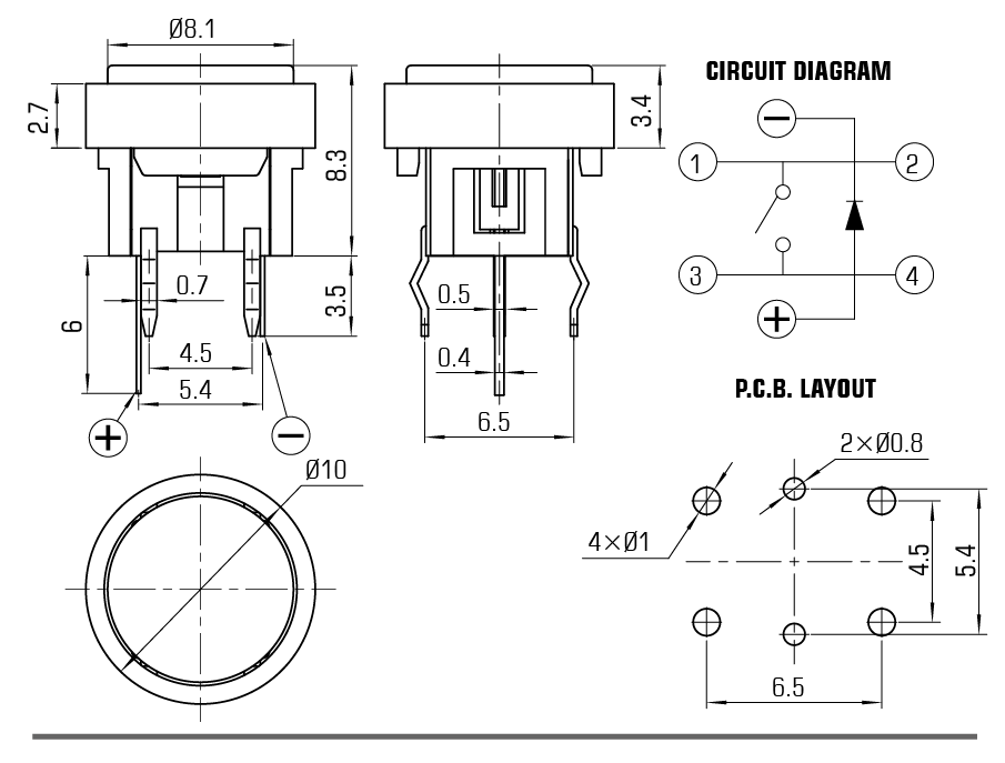 注:1、推薦工作電流5~10mA